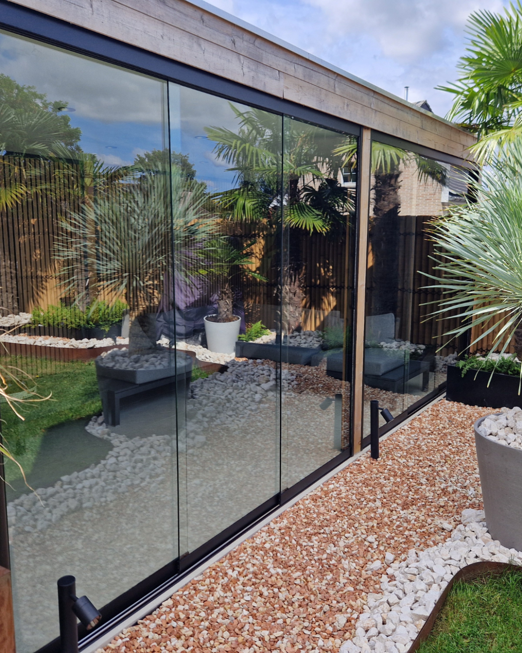 •  Veelzijdig toepasbaar – Geschikt voor veranda’s, terrasoverkappingen, tuinkamers, serres, balkons en zelfs als glazen binnenwand.
