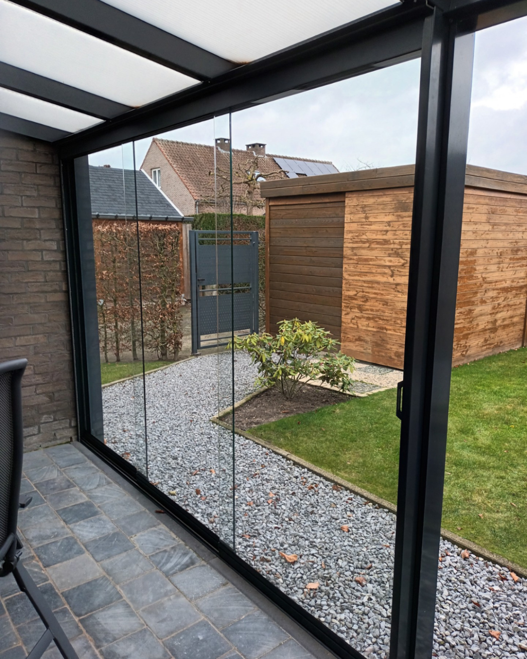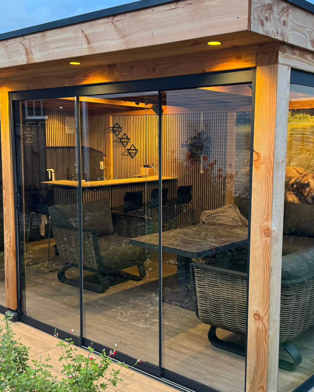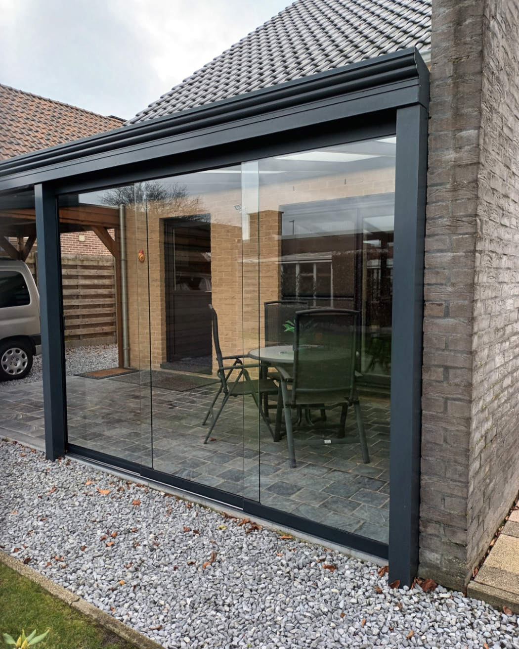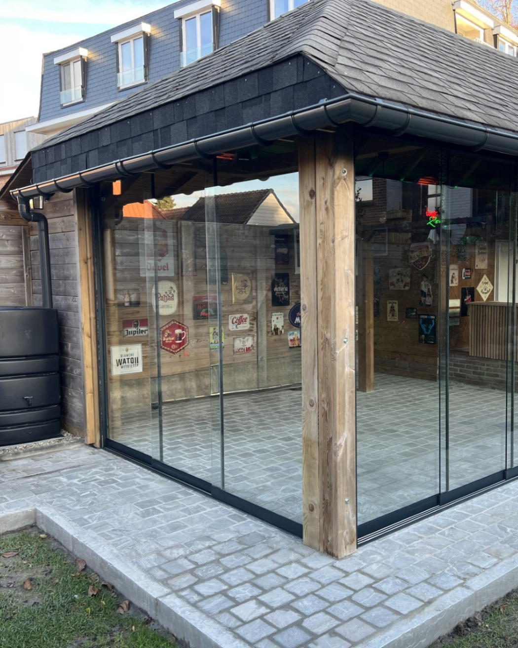 • Veranda afsluiten met glas – Bescherming tegen weer en wind, terwijl je uitzicht behouden blijft.