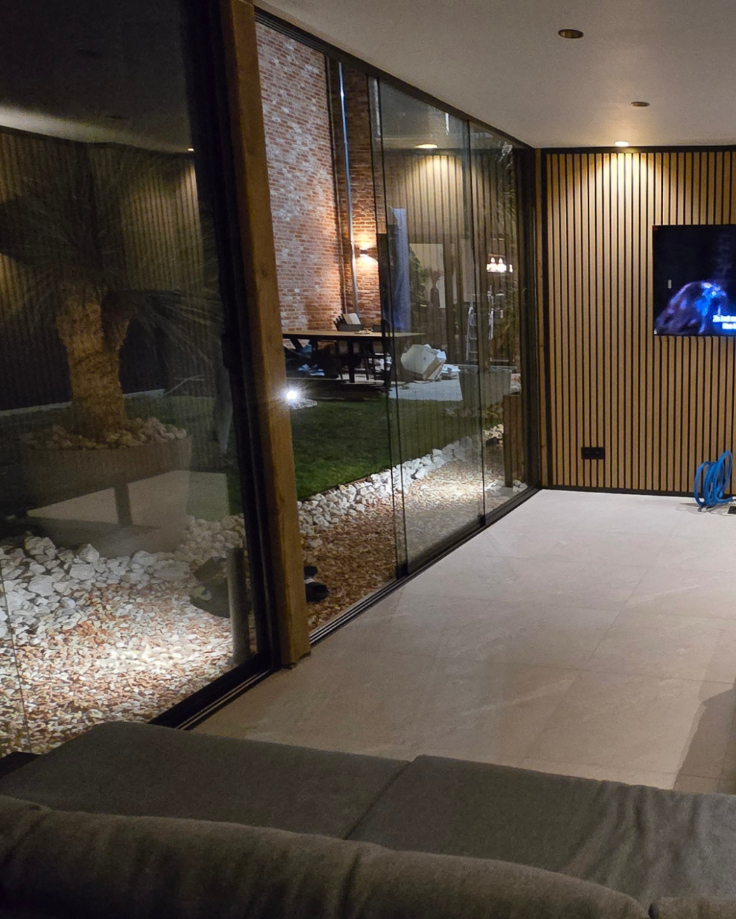 Glazen Schuifwand met 3-Rail Schuifsysteem – Luxe Afwerking & Uniek Onderrailsysteem