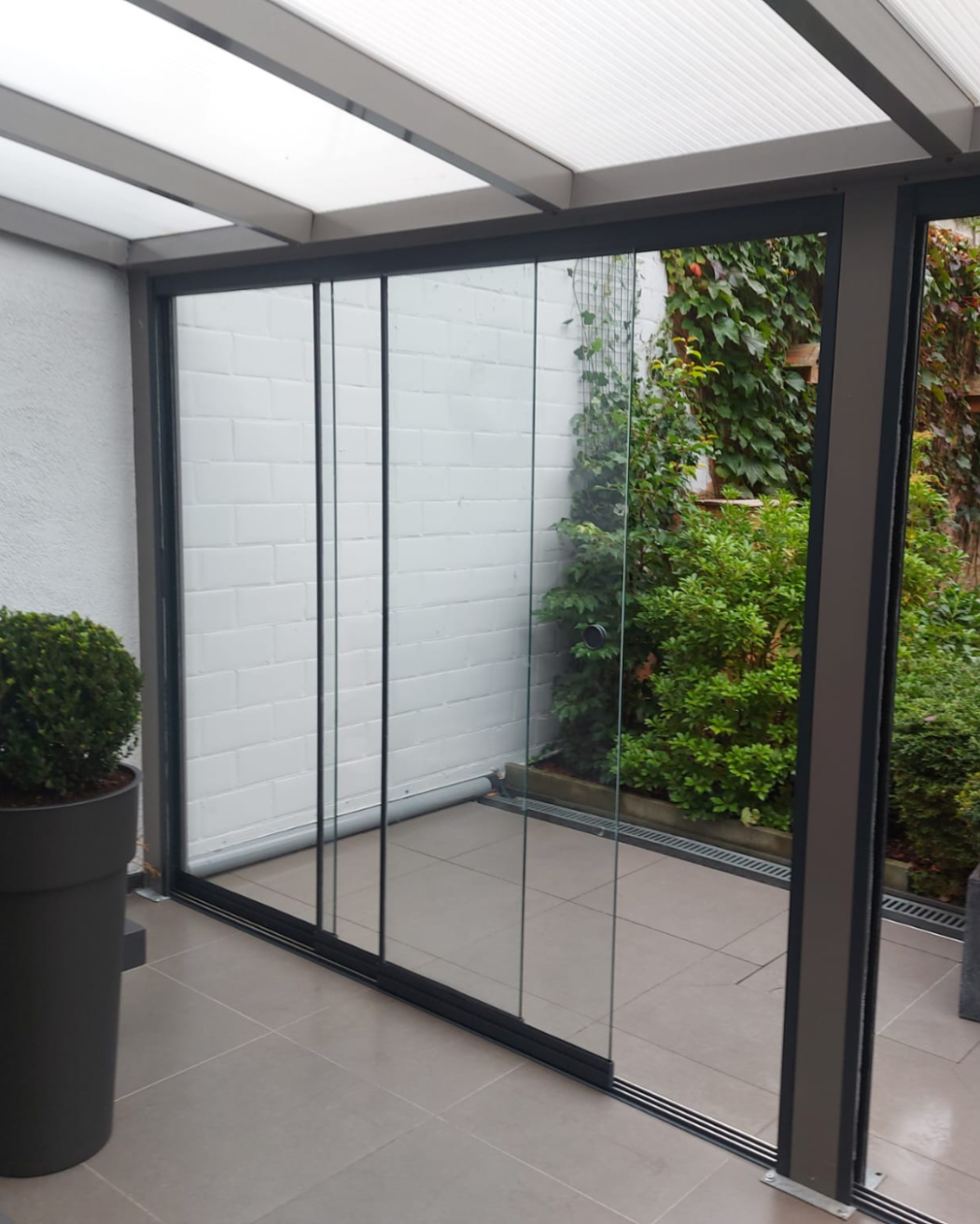 Overkapping glazen schuifwand 3 rail
